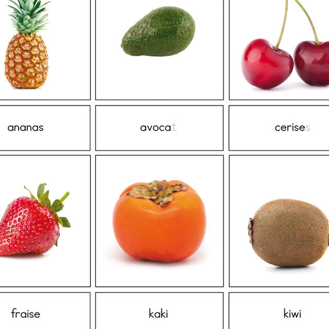 L’abricot, l’ananas, les cerises, la fraise, le melon, le raisin, la poire et la pomme vus en séance 4.