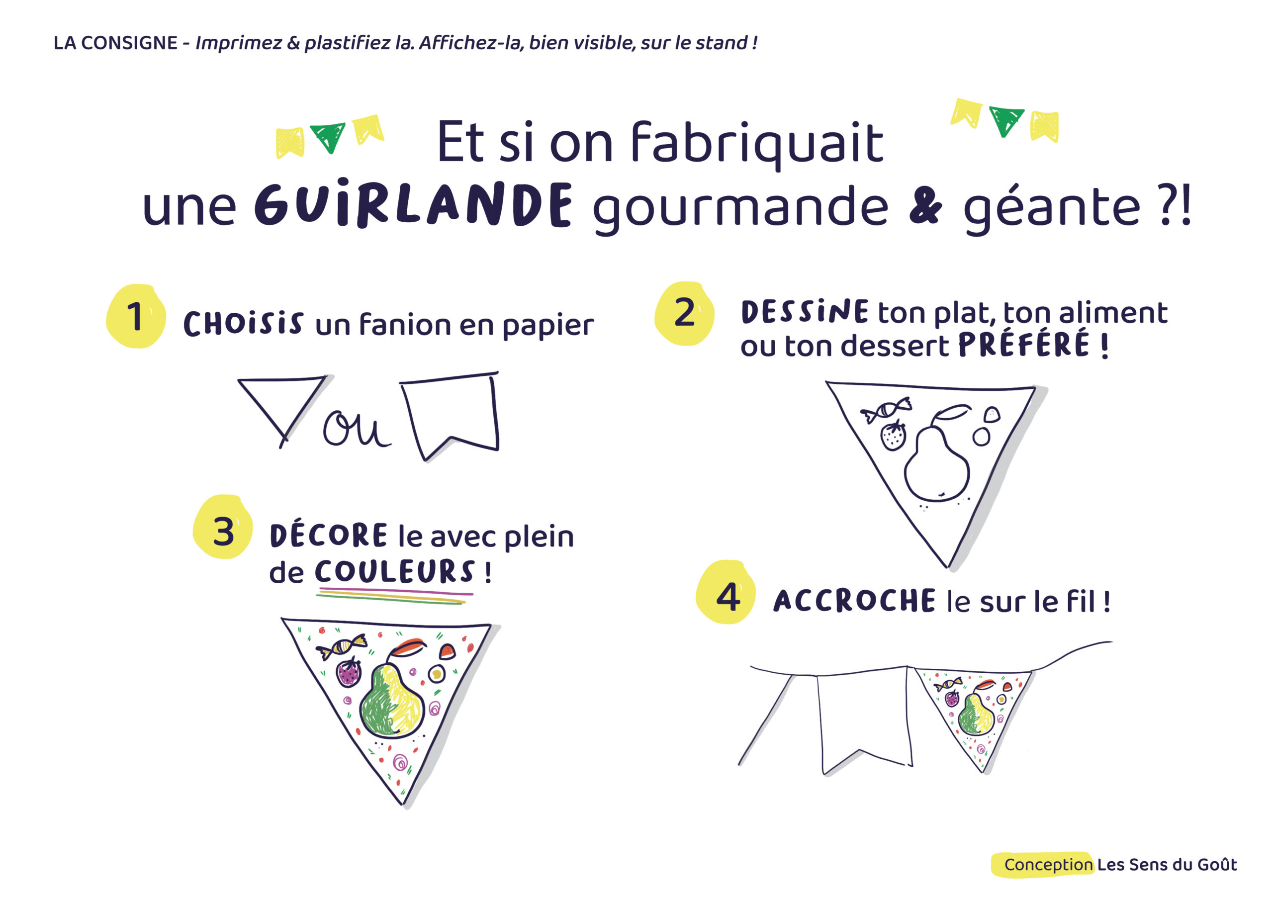 - – Les fanions vierges, découpés au préalable dans du papier cartonné et coloré. Assurez-vous qu’il y en ait au moins un par personne !