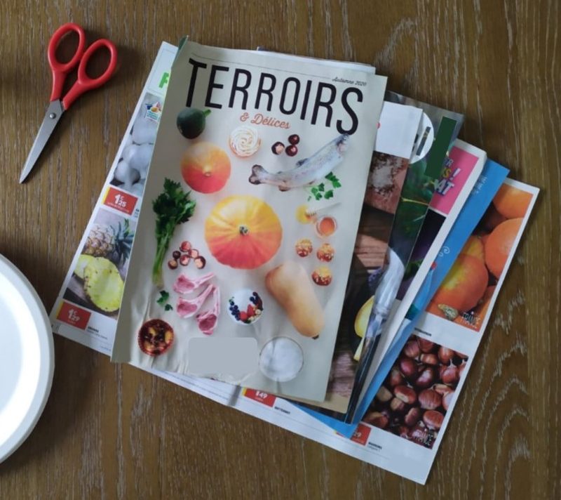 - prospectus avec des photos de fruits, de légumes, de fleurs, etc...