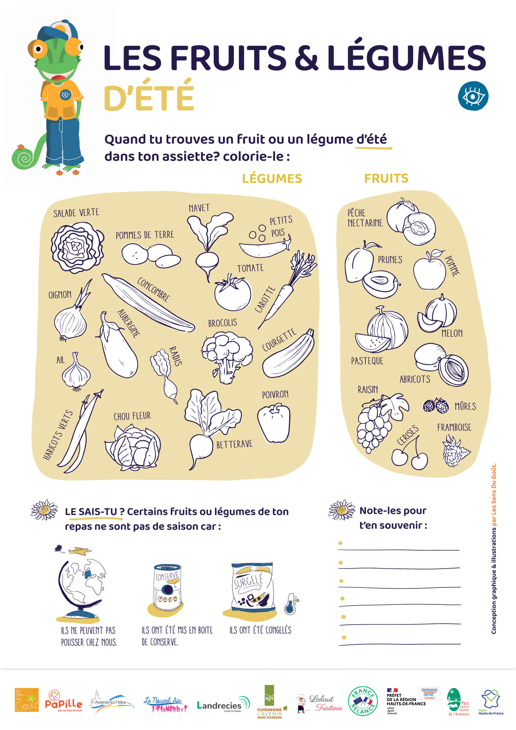 Ils pourront également noter le nom des fruits et légumes présents au menus et, qui ne sont pas de saison, au bas de l’affiche.