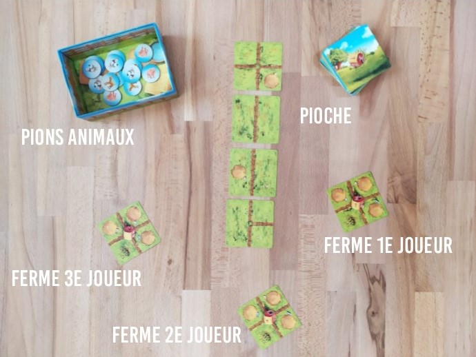 Chaque joueur va devoir construire et s’occuper de sa ferme en adoptant des animaux, et cultivant des champs de maïs. Mais attention à bien gérer sa ferme car les animaux peuvent ravager les champs de Maïs et un loup rode dans les parages, il peut faire fuir les animaux.