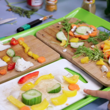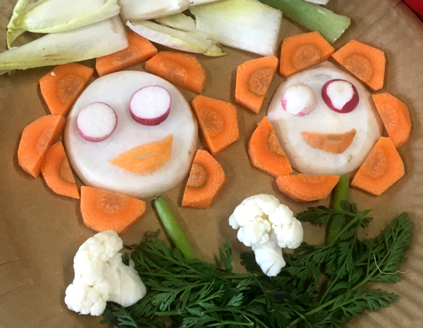 Vous allez réaliser un tableau comestible avec des légumes crus. Décider ensemble ce que vous voulez représenter : une maison, des fleurs, une tête de bonhomme…