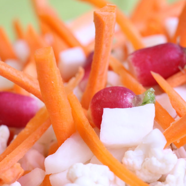 • Différents légumes croquants de saison, au choix : Carotte, concombre, navet, chou fleur, fenouil, courgette, radis, celeri rave, betteraves, chou rave