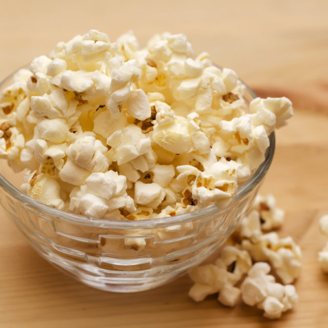 Lorsque les premiers grains commencent à sauter, baisser à feu moyen et remuer sans discontinuer, à couvert. Laisser cuire jusqu’à ce que tous le pop-corn soit soufflé.